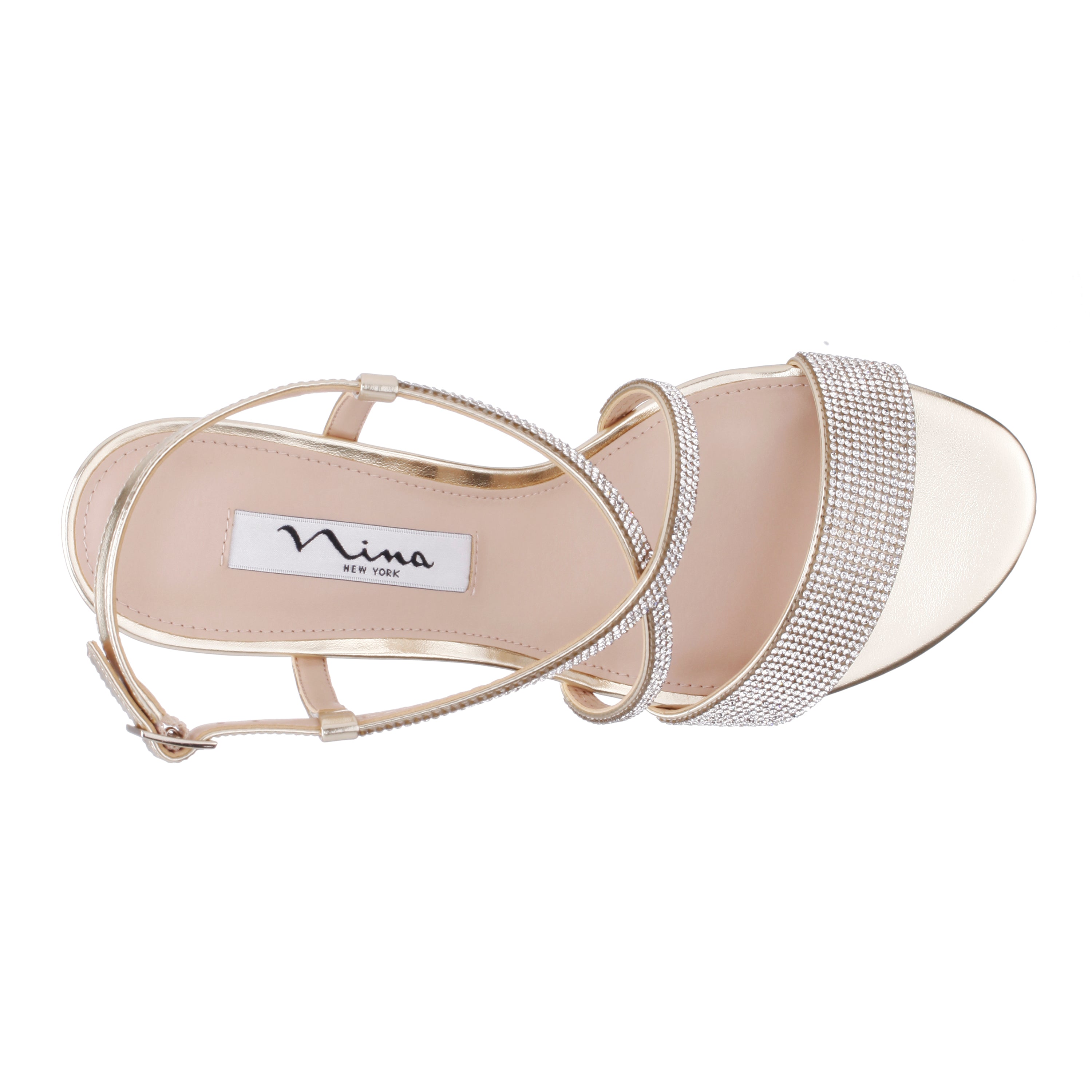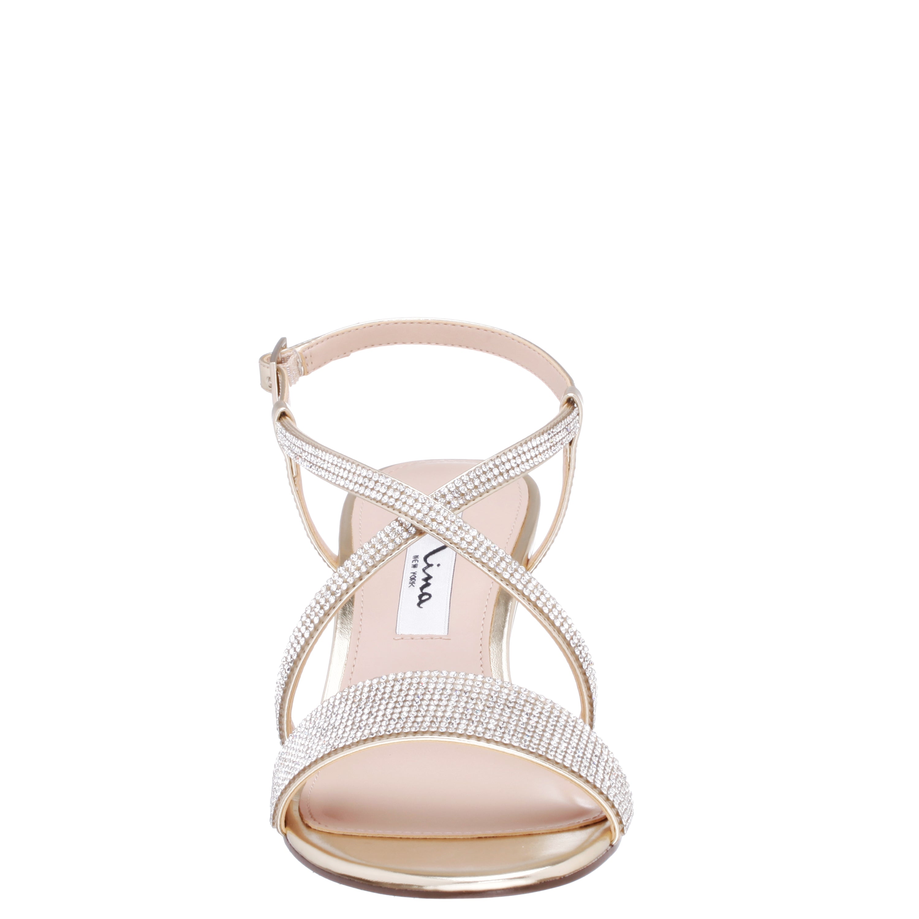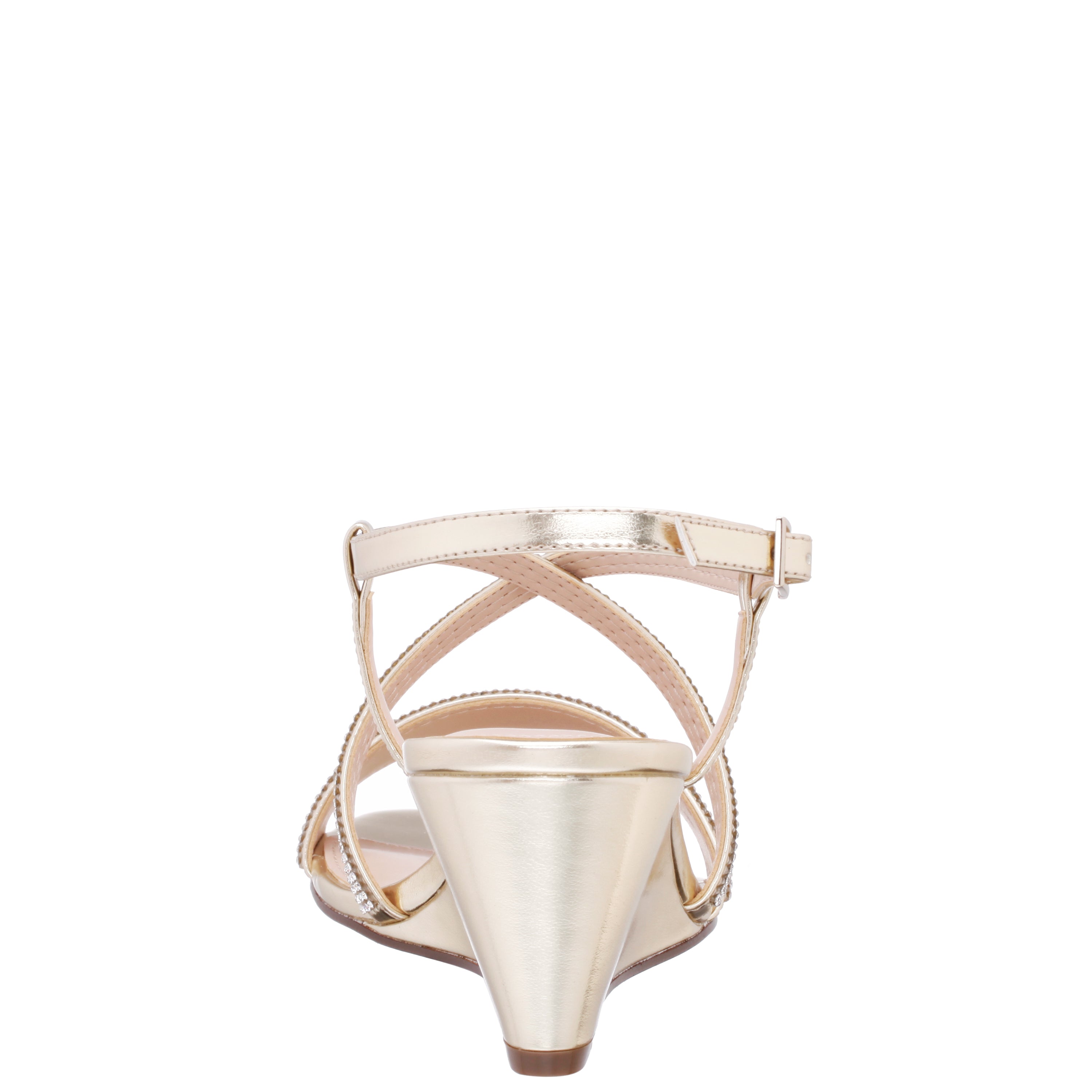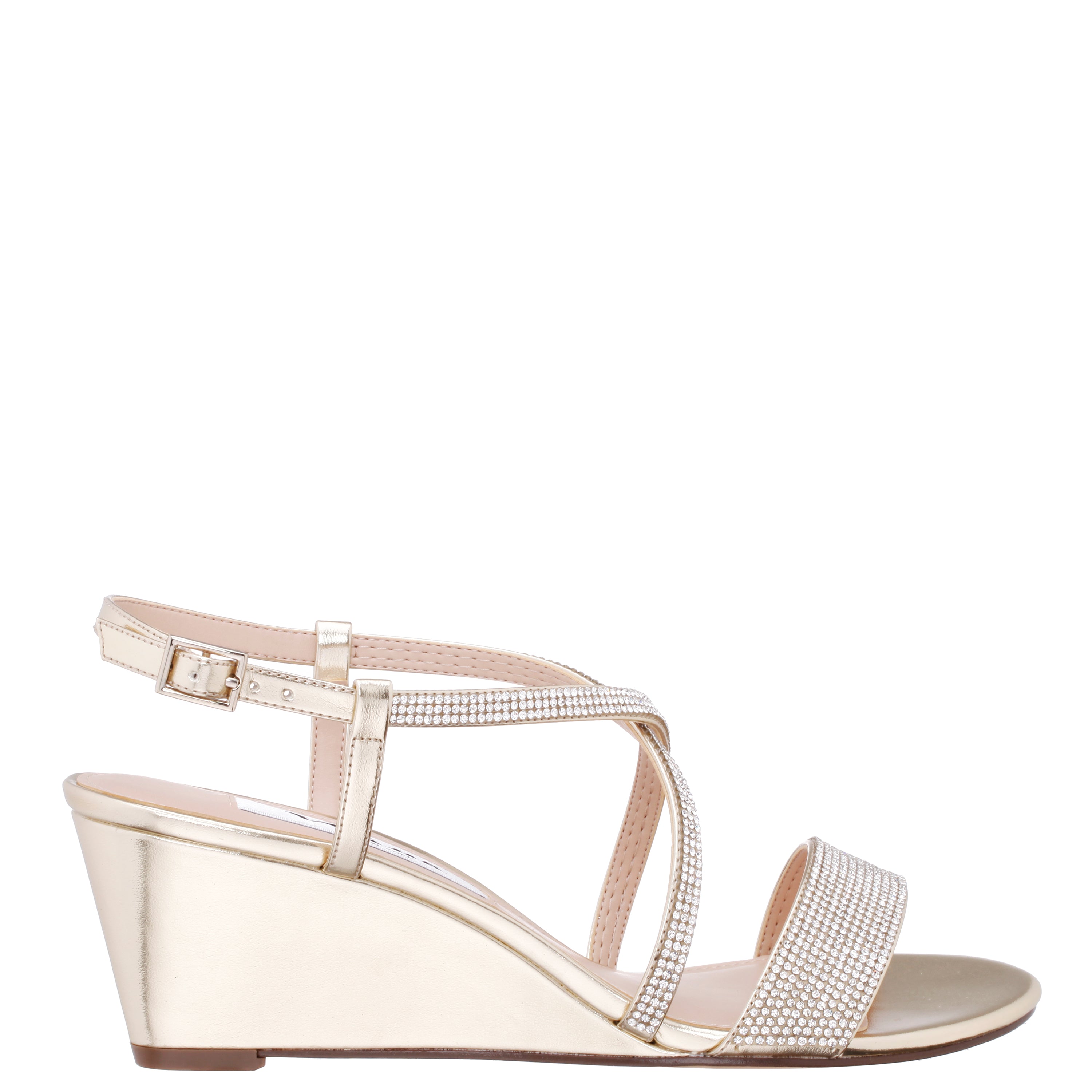 Slim cross-crossed straps lengthen the leg on a just-right height wedge. A glittering crystal- embellished strap makes this sandal timeless.