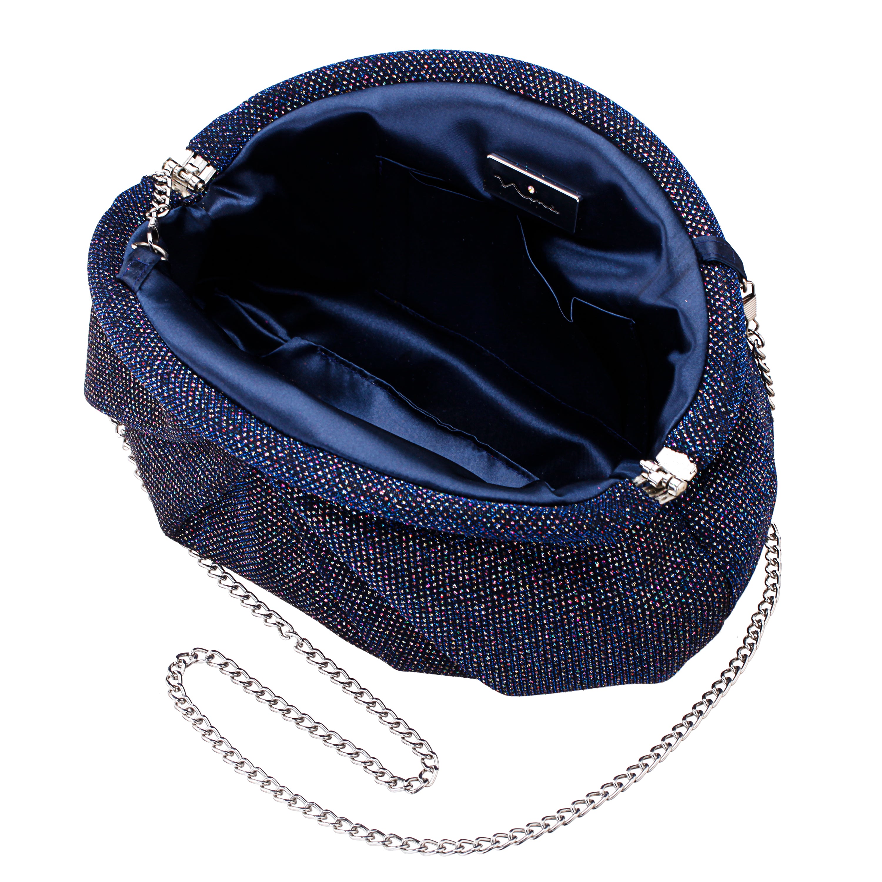 •Description: Glitter fabric soft pleated clutch